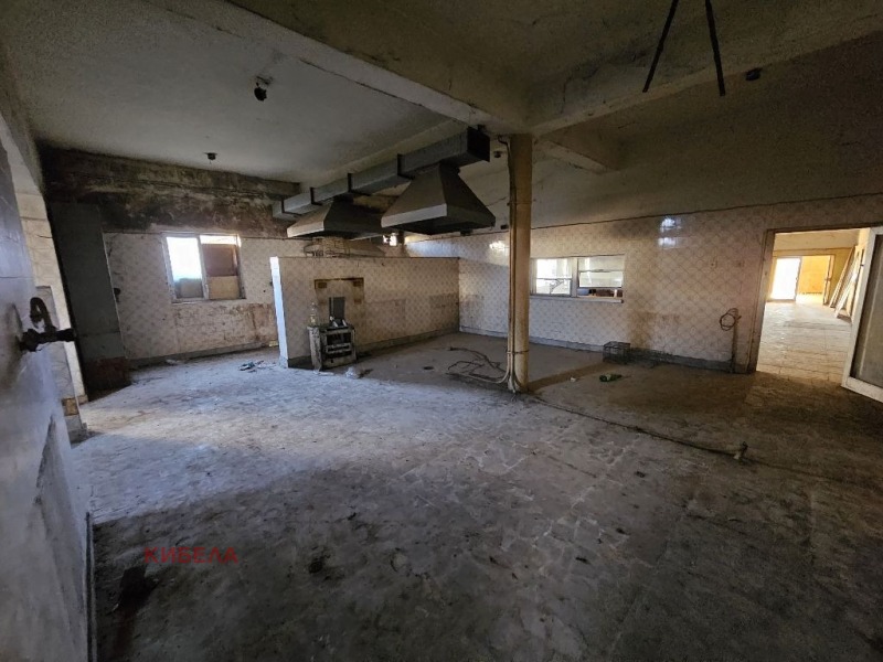Агенция Кибела предлага партерно помещение с площ от 420кв.м. в двуетажна масивна сграда. Състои се от две големи зали, едната около 30кв.м., друата около 60кв.м., две санитарни помещение, мокро помещение, голямо помещение, което е ползвано за кухня, с три склада, санитарен възел и милано.