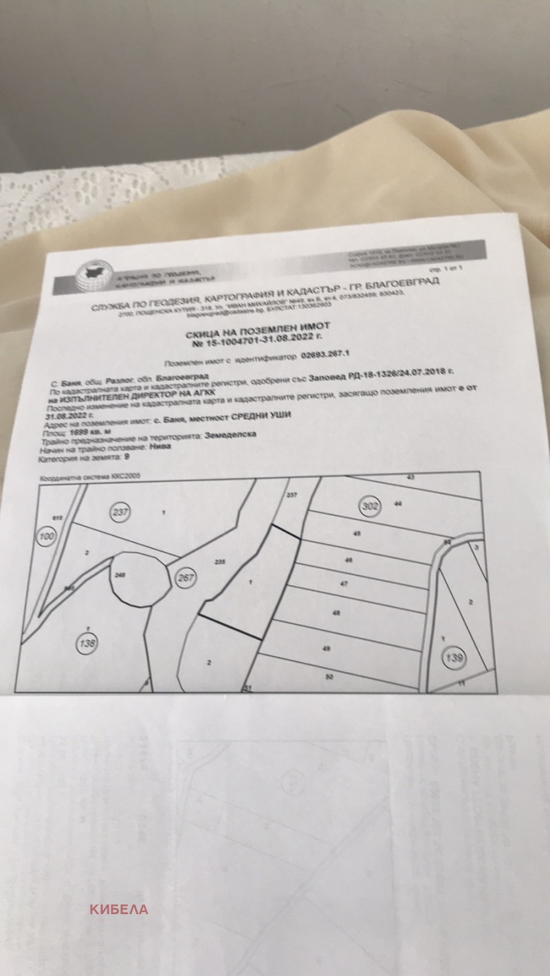 Продава ЗЕМЕДЕЛСКА ЗЕМЯ, с. Баня, област Благоевград → Обява 52982945