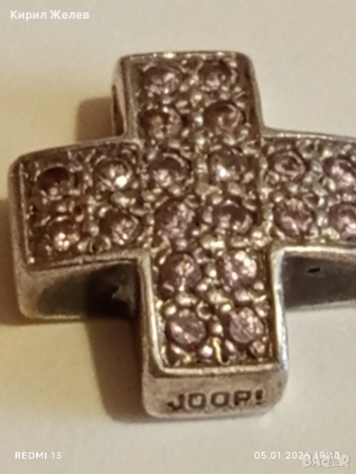 Сребърен кръст JOOP! с инкрустирани кристали Розов Турмалин ювелирна изработка 52817