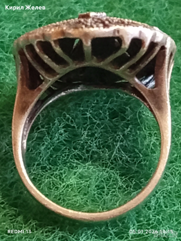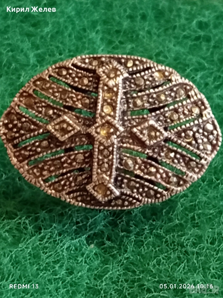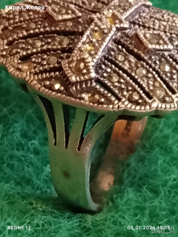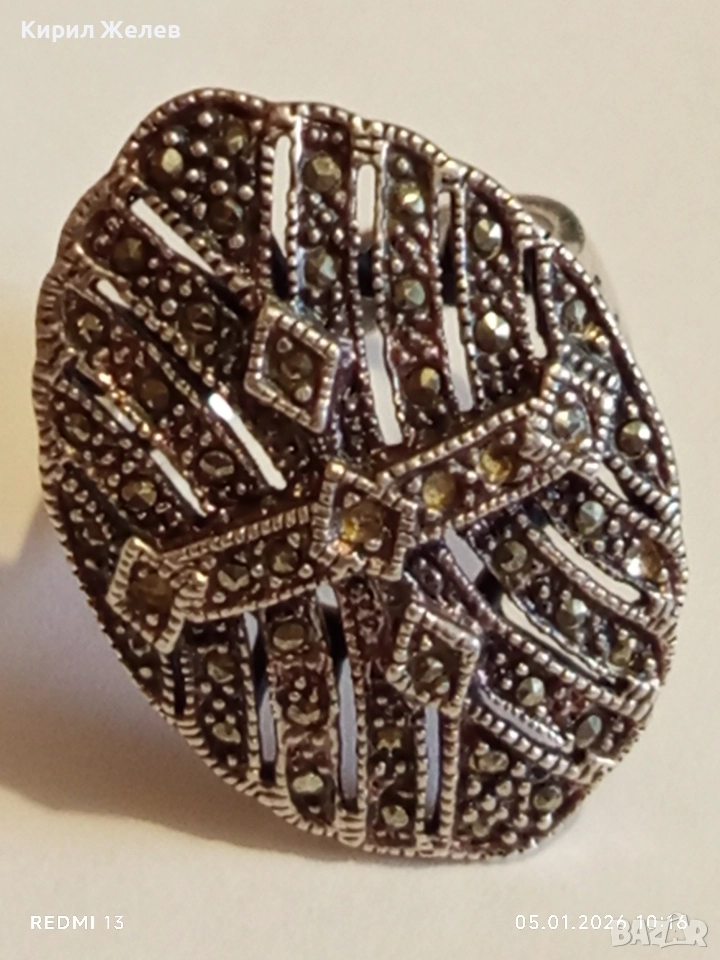 Винтидж сребърен пръстен с инкрустирани Маркезити стил вдъхновен от Викторианската епоха 48569