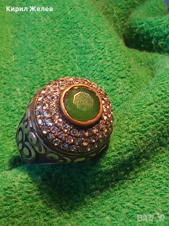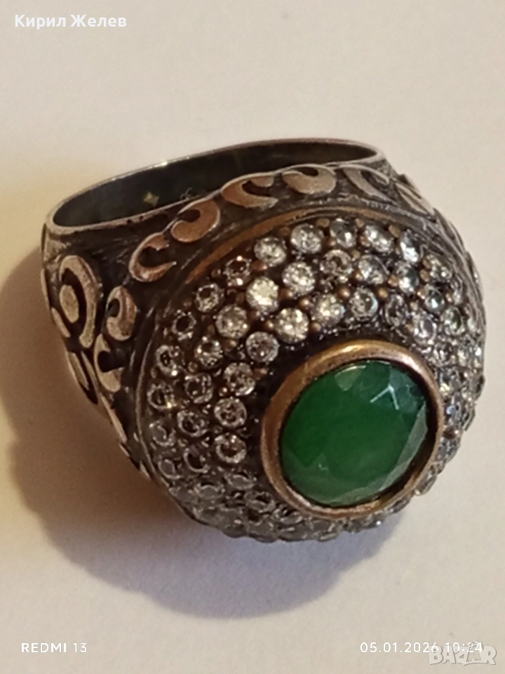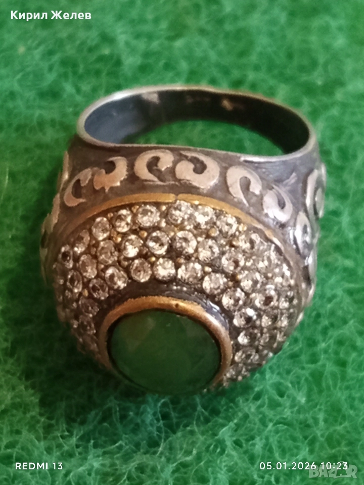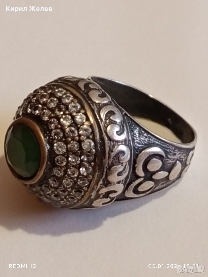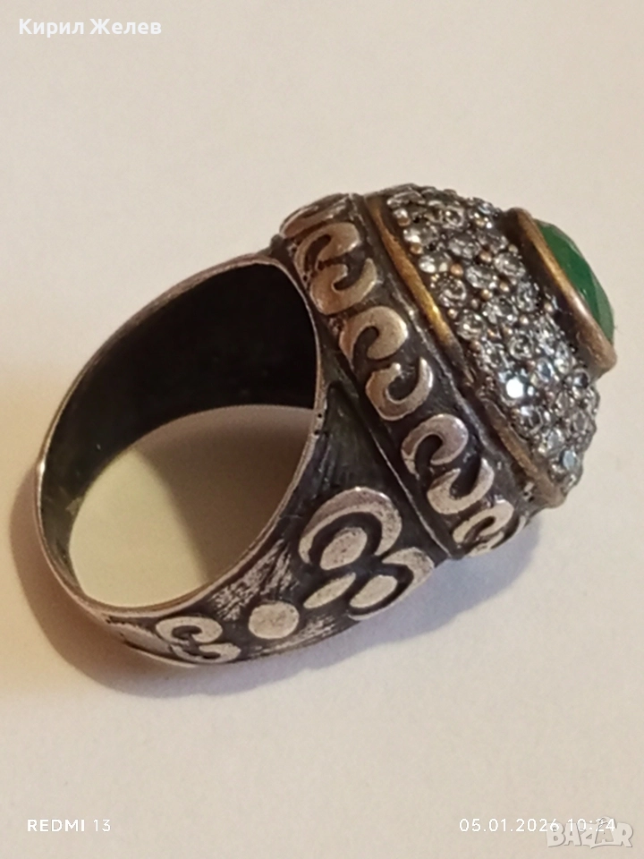 Винтидж сребърен пръстен стил Хюрем султан с НЕФРИТ орнаментиран ювелирно бижу 51826