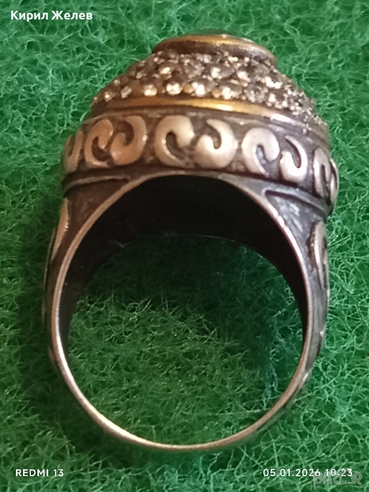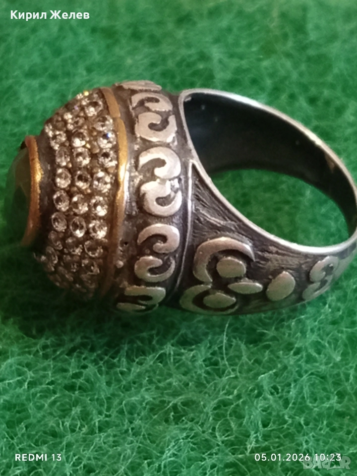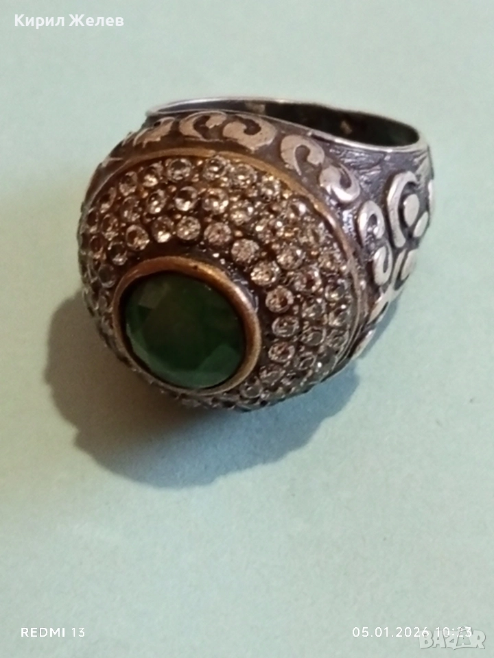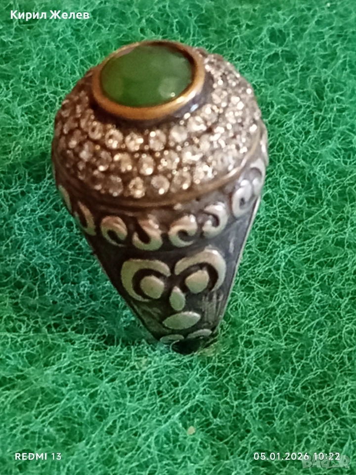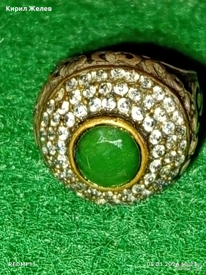 Винтидж сребърен пръстен стил Хюрем султан с НЕФРИТ орнаментиран ювелирно бижу 51826