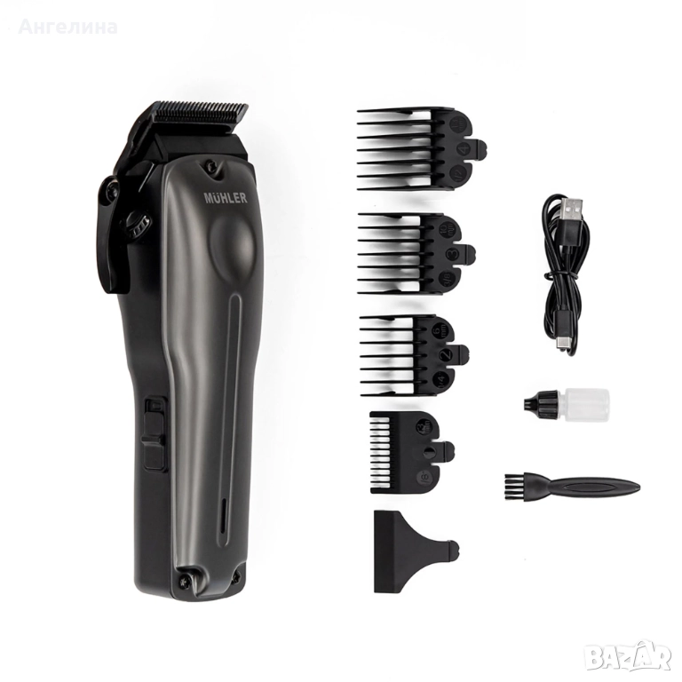 Аксесоари: приставка за подстригване, смазочно масло, четка