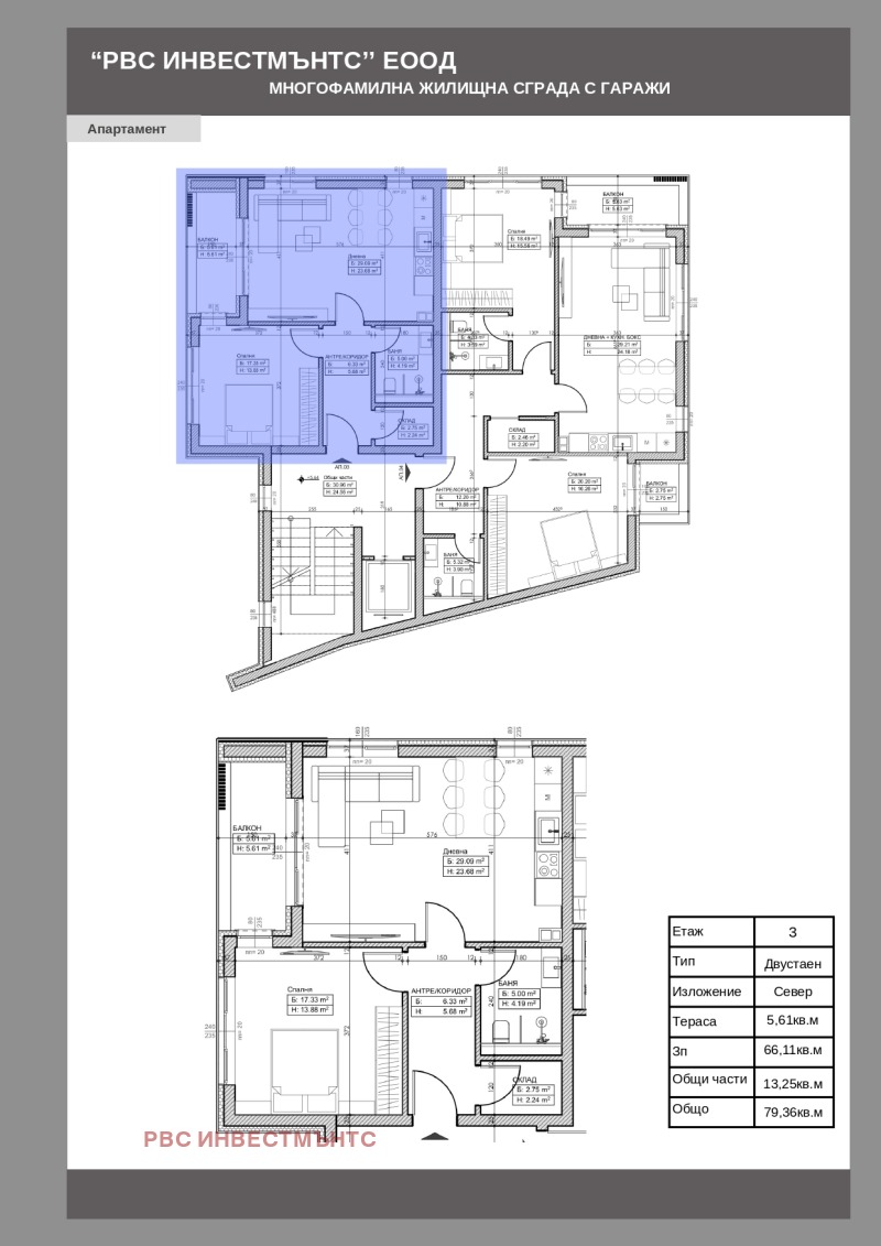 Апартаментът е с 79.36 кв.м. обща площ и е разположен на трети жилищен етаж . Имотът се предлага на етап 'ДО КЛЮЧ'- настилка- ламинат, стени и таван с положен гипсокартон, шпакловка и боя, оборудвани бани с тоалетни, осветителни тела и климатик.