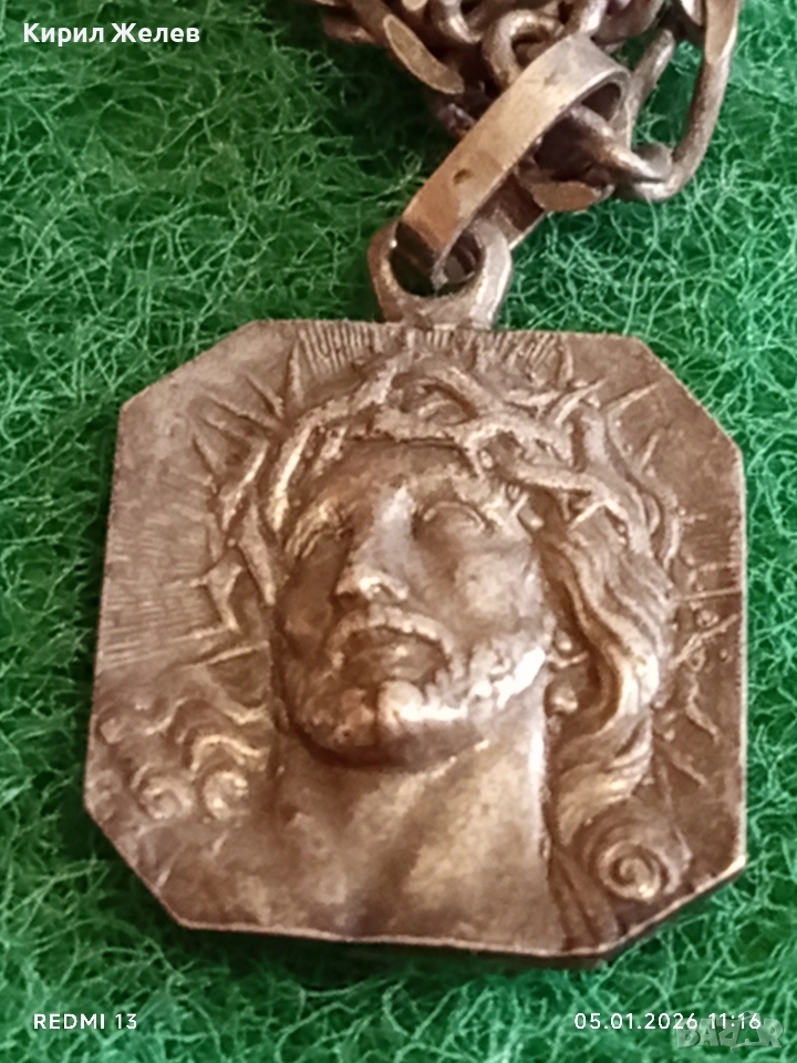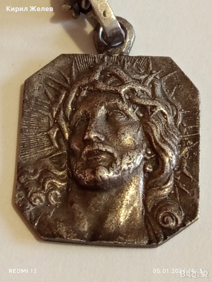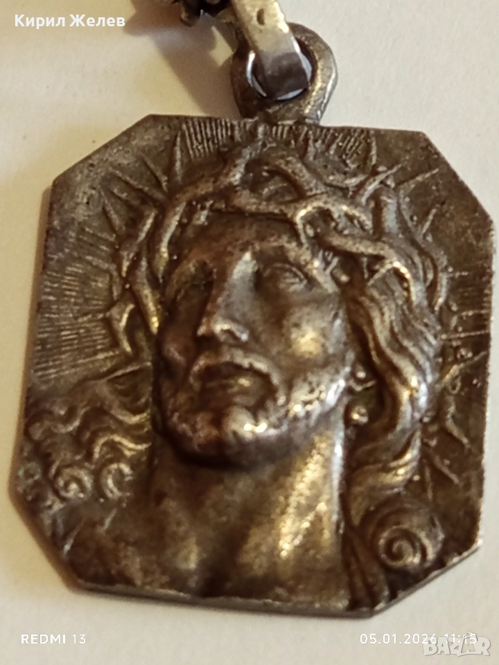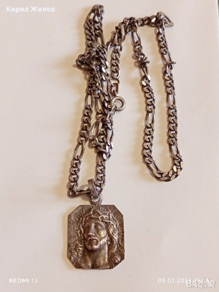 Винтидж сребърно колие с висулка Исус Христос майсторска ръчна изработка 43246