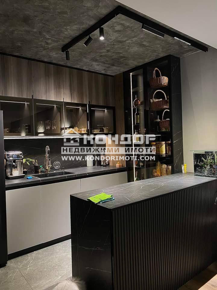 Оферта 68172 - Предлагаме ви жилище в комплекс от затворен тип , с множество магазини , банка, и медицински център в началото на кв Тракия. Апартаментът е напълно обзаведен и луксозно ремонтиран.Ремонтът е изпълнен с висококачествени материали и внимание към всеки детайл като комбинира модерна визия функционалност и комфорт Апартаментът се състои от просторна дневна с кухненски бокс и трапезария спалня с излаз на тераса баня с тоалетна антре и складово помещение Банята е с дизайнерско изпълнение облицована с гранитогрес в мраморен ефект мебели с естествен фурнир кръгло LED огледало черни матови смесители и вградени осветителни решения които придават елегантна и изчистена атмосфера Антрето впечатлява с индустриален стил сиви декоративни стени черни врати и дървени акценти допълнени от растителна декорация която внася уют и баланс в пространството Сградата е ново строителство с модерна фасада луксозни общи части От високия етаж се открива впечатляваща панорамна гледка към града.В непосредствена близост до магазини училища спирки на градски транспорт и зелени площи.