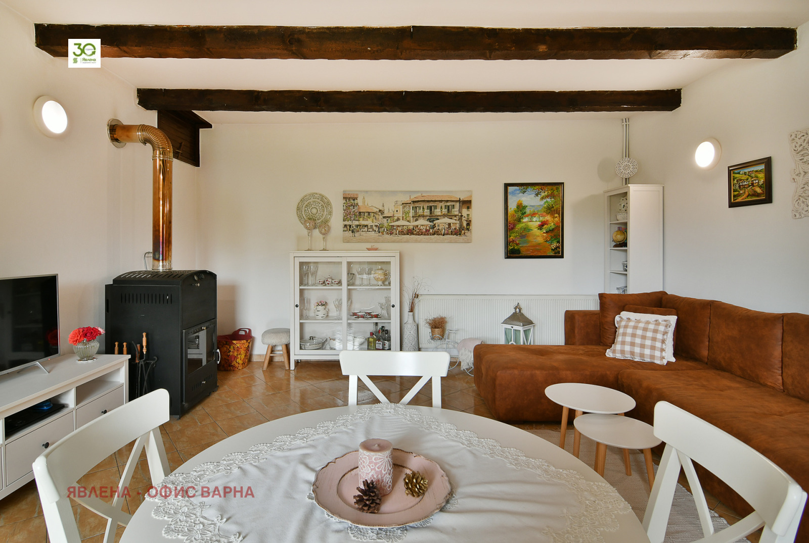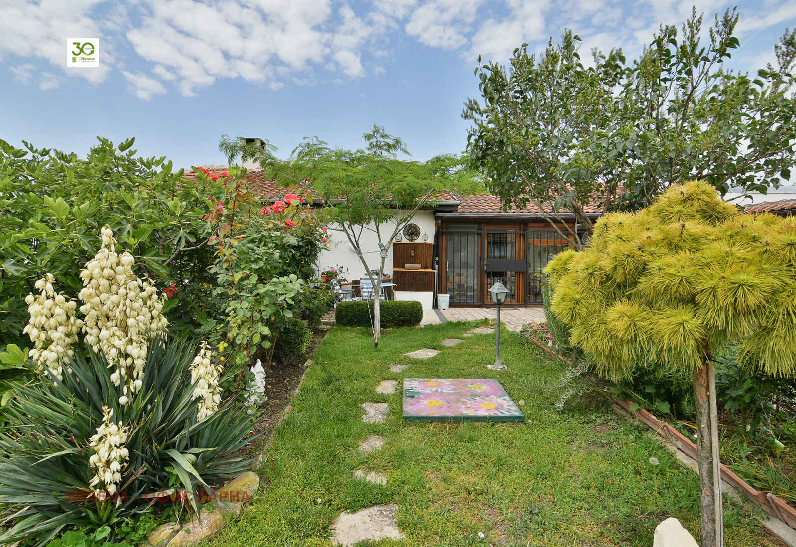 Ексклузивно! Изрядни документи за сделка. Описание : Явлена има удоволствието да ви предложи уникална къща в китно българско село. Всеки един детайл е с много вкус и неповторим стил. Площта на дворното място е 2203 кв.м. Къщата е построена през 2009г , но са запазени каменните основи и зидове от стара каменна къща , което прави имотът изключително здраво строителство . Застроената площ е 182 кв.м от които жилищната площ е 140 кв.м и 42 кв.м стопански постройки. Представлява предверие зимна градина, просторна всекидневна с уютен кухненски кът и мивка с прозорец от който има гледка към красивата градина, три спални ,две бани с тоалетни , едната от които с вана, малка кокетна тераска. Допълнителна стая, която е с отделен вход може да бъде преустроена за офис ,тъй като е със самостоятелен вход отделно от другата жилищна част. Отоплението е парно на дърва с италианска камина, бойлер с две серпентини едната към парното и една към слънчев колектор. Отделно има партиди за ток и вода към Енерго про и ВИК. Предимства на имота са фотоволтаична система 5 киловата с батерии за независимо електрозахранване , външна изолация, кладенец с хидрофорна система към къщата, гараж за два автомобила, навес за дърва, оранжерии и три складови помещения . Покривът на къщата , както и покривите на стопанските постройки са нови . Дворът е отлично поддържан и предлага разнообразни видове овошки като череши, кайсии, ябълки, круши, , сливи, дюли, праскови, , смокини , както и бадеми, лешници, вишнап, финап , екзотични растения като албиции, бамбук, дамасцении, кипариси, голямо разнообразие от розови храсти . Документите са изрядни за сделка. Интернетът е високоскоростен оптичен. Къщата се продава полуобзаведена. Локация: Имотът се намира на 30 км от гр.Варна и на 3 км от гр.Суворово. В село Чернево има магазини, детска градина, читалище, зъболекар, изипей, Близо се намира комплекс Барите . Има и жп спирка , което прави достъпът до селото с автомобил, влак и автобус. Транспортът е ежедневен .Нашето предложение е за ценителите на красиви къщи предлагащи уют, спокойствие и усещане за дом.