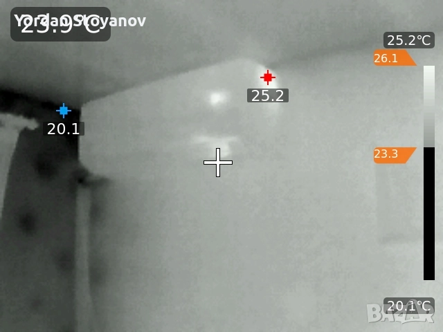- Откриване на течове: Термографията е отличен метод за откриване на течове в тръбопроводи, покриви и стени. Може да помогне за идентифициране на точната точка на проникване на водата, позволявайки навременни ремонти и минимизиране на щетите.