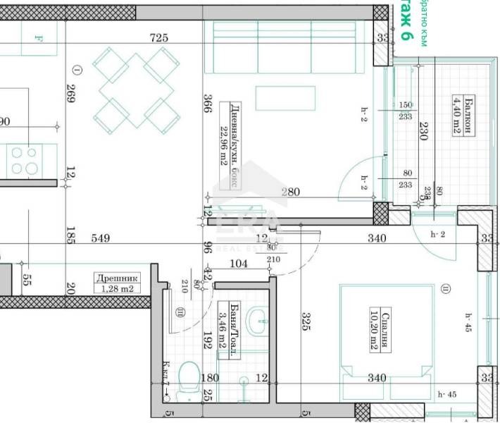 ЕРА Вива продава двустаен апартамент в новострояща се жилищна сграда в кв. Левски, гр. Варна. Жилището е със застроена площ от 55.25 кв.м. /64.14 кв.м. с общите части/ и е разположено на шести етаж. Имотът е функционално разпределен, включващ просторна дневна с кухненски кът /22.96 кв.м./, спалня с дрешник /10.20 кв.м./, баня с тоалетна /3.46 кв.м./ и балкон /4.40 кв.м./. Стаите са светли, с правилни форми. Степен на завършеност по БДС - на шпакловка и замазка, с поставена ПВЦ дограма и блиндирана входна врата. Отоплението е предвидено на ток.