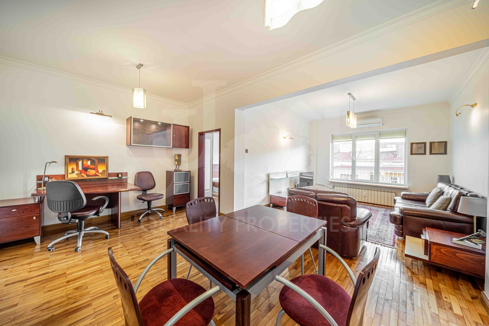 Предлагаме на Вашето внимание изцяло обзаведен двустаен апартамент, находящ се на ул. Георги Сава Раковски на метри от бул. Васил Левски и НДК. Районът е изключително комуникативен, в близост има редица хранителни магазини, заведения за хранене и развлечения, парк, различни банки, аптеки, няколко спирки на градски транспорт, метростанция на 5 минути пешеходно разстояние, което осигурява бърза връзка с останалите райони в Столицата и много други. Жилището е разположено на 6-ти последен етаж под тавани, в сграда с добре поддържани общи части, контрол на достъпа с чип и тих асансьор. Апартаментът е с площ 88 кв.м. и се състои от: входно антре, просторна дневна ( разделена на дневна част, трапезарна част и работна част), самостоятелна кухня, спалня, баня и тоалетна. Имотът се отличава освен с отличната си локация и с това, че в него не е живяно и разполага с всички необходими ел. уреди, включително съдомиялна, пералня със сушилня, кафемашина и други. Отоплението е на ТЕЦ, като има и климатик в дневната. Работим с колеги по всички наши оферти! Водещ брокер: Диан Стоянов 0886083233. Оферта номер: 0205.