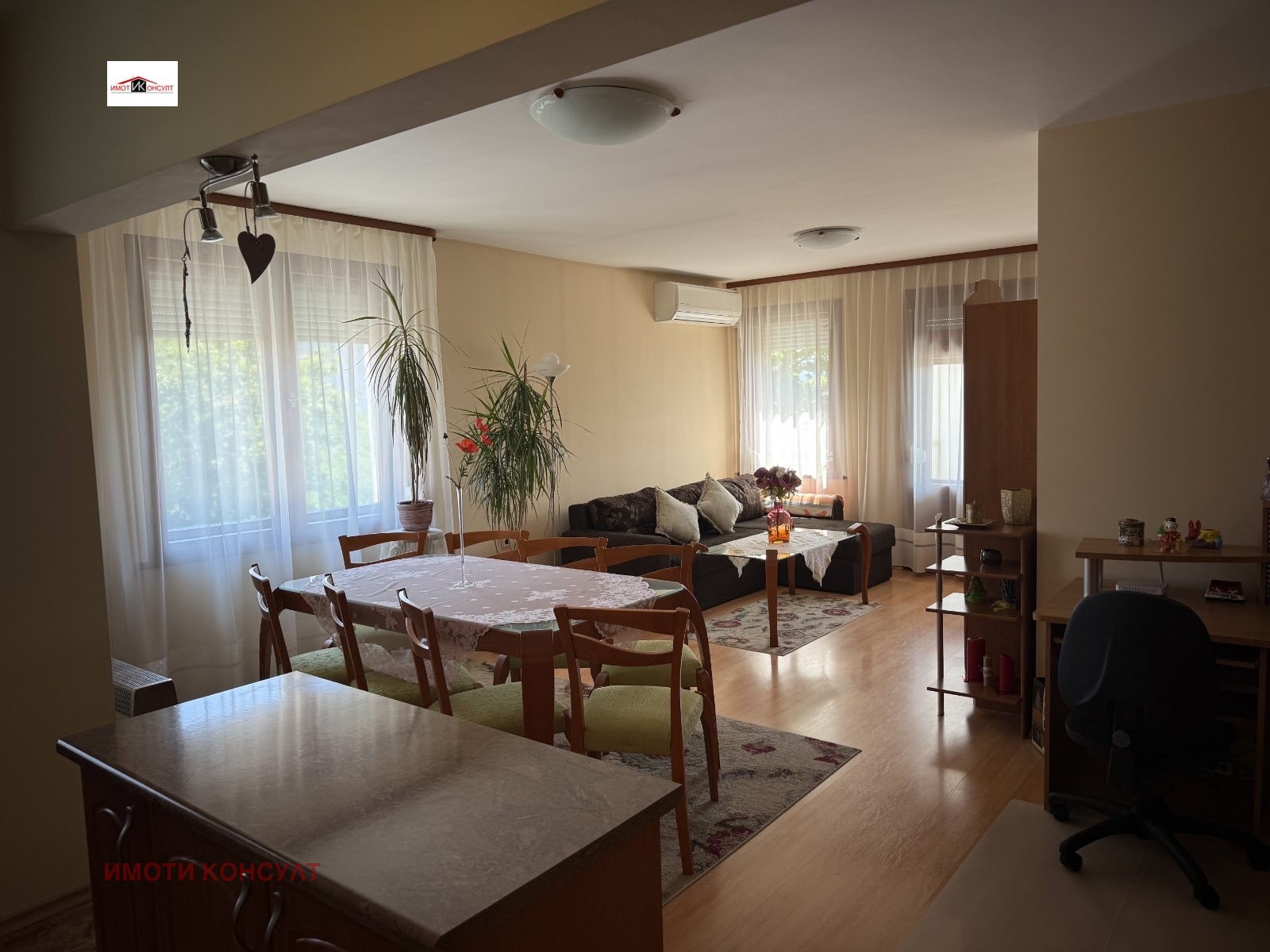 Агенция 'Имоти Консулт' предлага тристаен апартамент под наем в Широкия център на Велико Търново. Жилището е разположено на 3. от общо 6 етажа на сградата и е с площ от 80 кв.м., разпределени както следва: входно антре, просторна вскидневна с кухненски бокс, две спални, баня-тоалетна, склад-мокро помещение и две тераси. Напълно обзаведено и оборудвано с всички необходими електроуреди. Охлаждането и отоплението са на ток. В близост има множество магазини, денонощна аптека, новата болница на града, спирки на градския транспорт и др. Заповядайте на оглед! Ref.6289