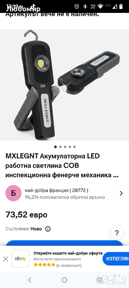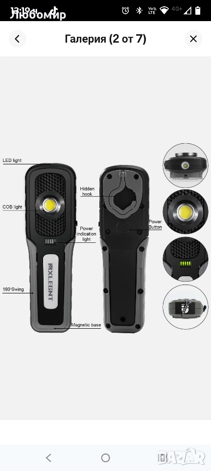 MXLEGNT Акумулаторна LED работна светлина COB инспекционна фенерче механика