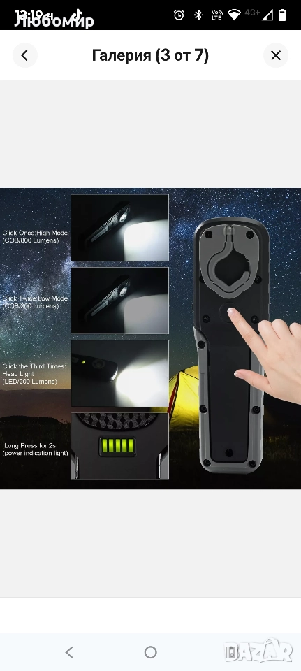 DUE LUCI ULTRA LUMINOSE: integrate con LED da 20 W e COB da 5 W come sorgente luminosa, tre livelli di luminosità impostabili tramite pulsante di commutazione (Funzione: On/high 800LM/low 300LM/LED 200LM/OFF). La luminosità massima di 800LM può illuminare facilmente lo spazio di 80m2!