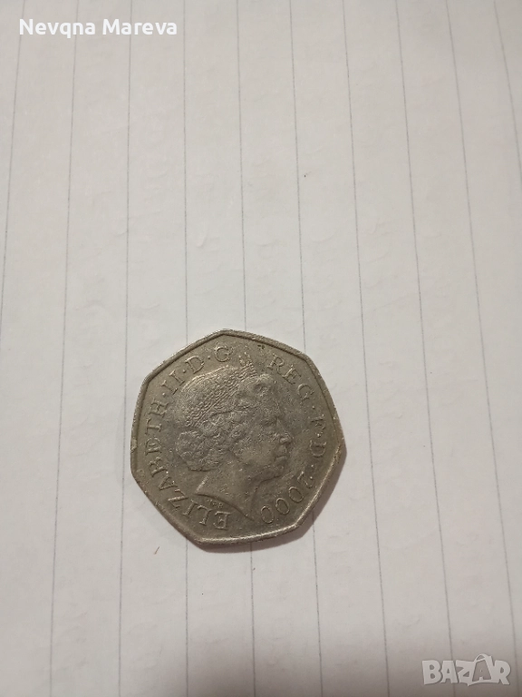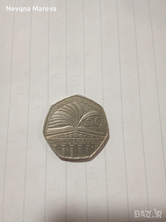 Продавам две английски монети едната е 50 Пенса в чест на 150 годишнината на англ.библиотека,а другата е един паунд с Кралицата от 2016 г.Цена по договаряне.
