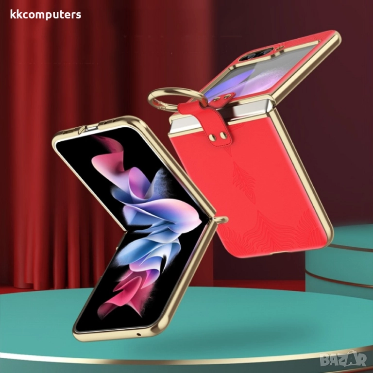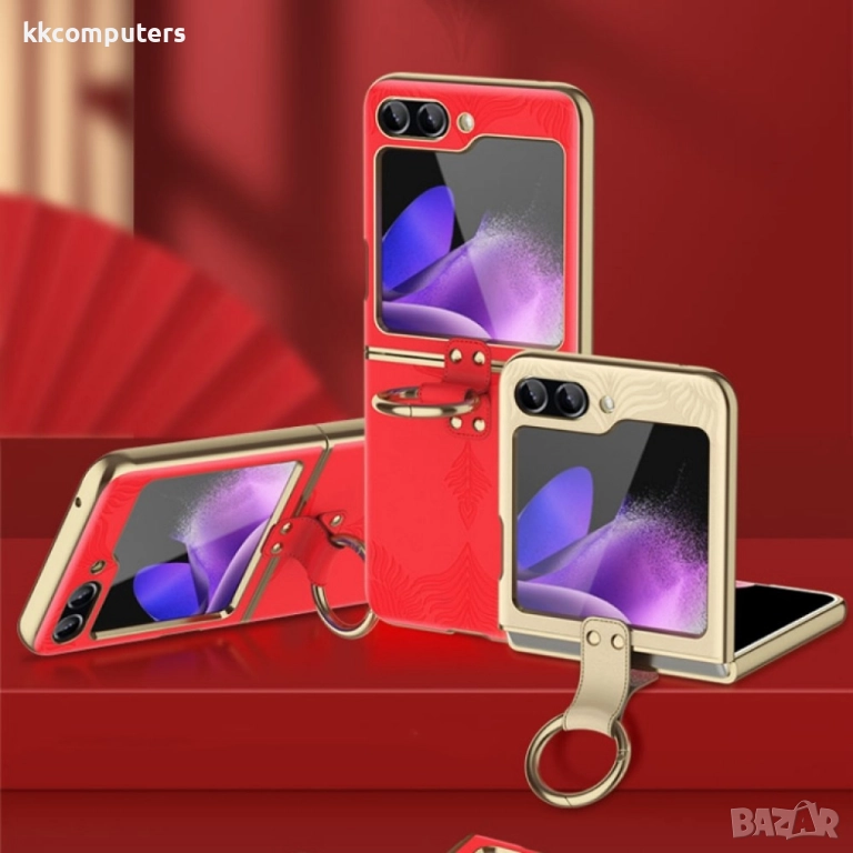 Samsung Galaxy Z Flip5 Electroplated Ring Holder Кожен Калъф и Протектор