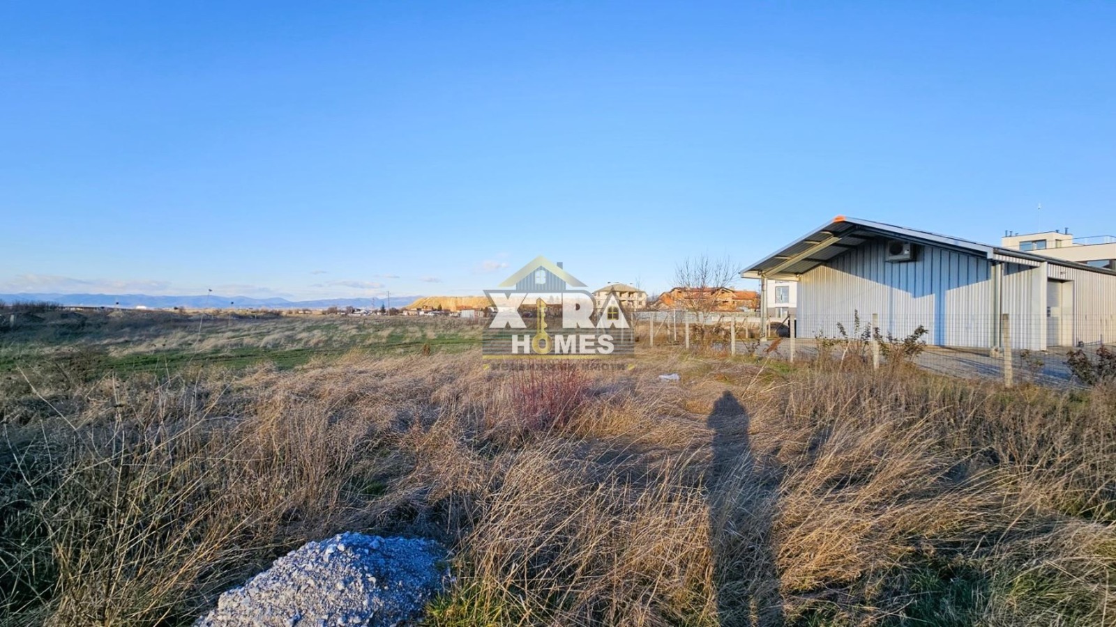 От дясната си страна граничи със съществуващи къщи и нова жилищна кооперация, което допълнително подчертава потенциала му за жилищно и инвестиционно развитие. В непосредствена близост са налични ток, вода и канализация. Имотът е подходящ както за изграждане на няколко еднофамилни къщи, така и за складови помещения, халета или жилищни кооперации, което го прави отличен избор за инвеститори и предприемачи с дългосрочна визия.