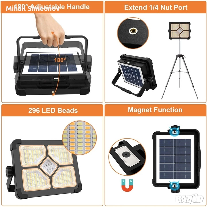- [USB и соларно зареждане] Този презареждаем LED прожектор е оборудван с презареждаема батерия от 15 000 mAh. Може да се зарежда чрез слънчева енергия и USB кабел, като е енергийно ефективен и екологичен.