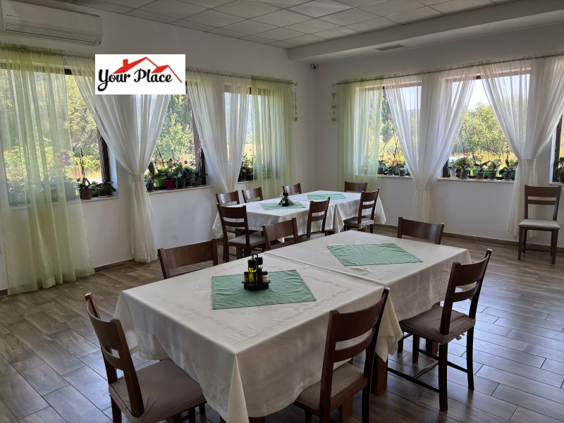 Сграда рестотант на два етажа за 80 седящи места и голяма тераса на втория етаж, обурудвана кухня, асансьор, двор с голяма шатра за 30 човека и 6 шатри за по 12 човека, фонтан в средата.