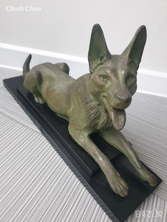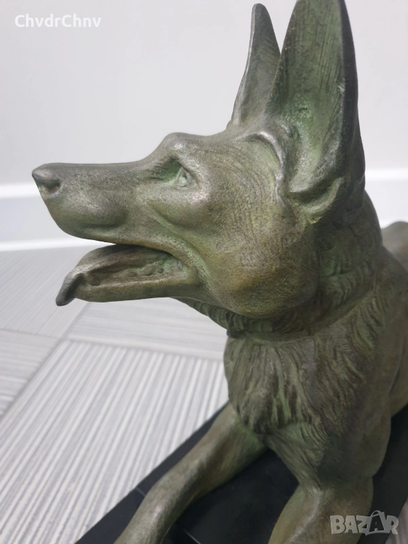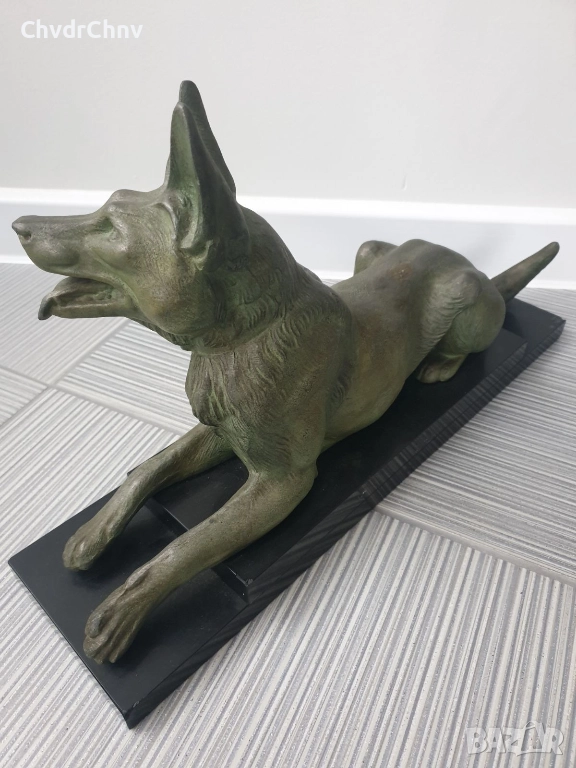 51см-9кг Carvin ЦAM статуетка/стара френска скулптура/фигура на куче-немска овчарка