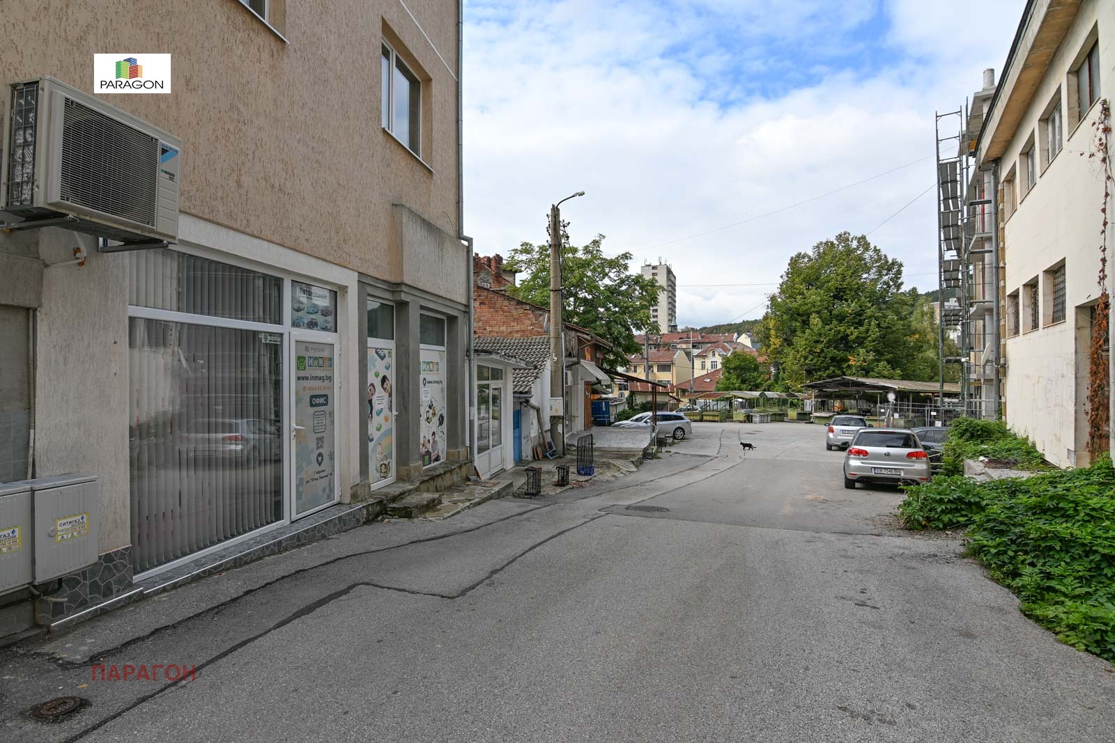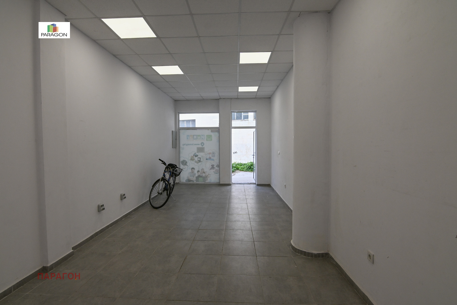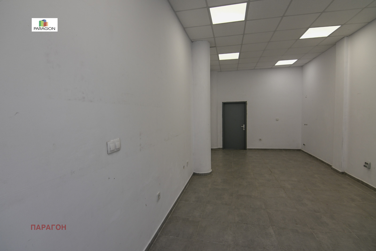 Парагон ви предлага търговско помещение в края на Централния пазар до Здравна каса. Състои се от търговска зала, складово помещение с голяма височина и сервизни помещения. Подова настилка-гранитогрес , а осветлението е с LED панели