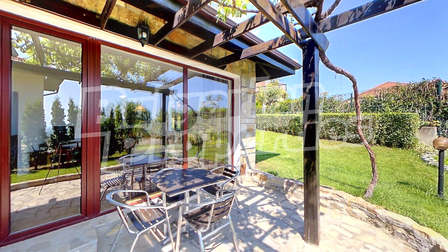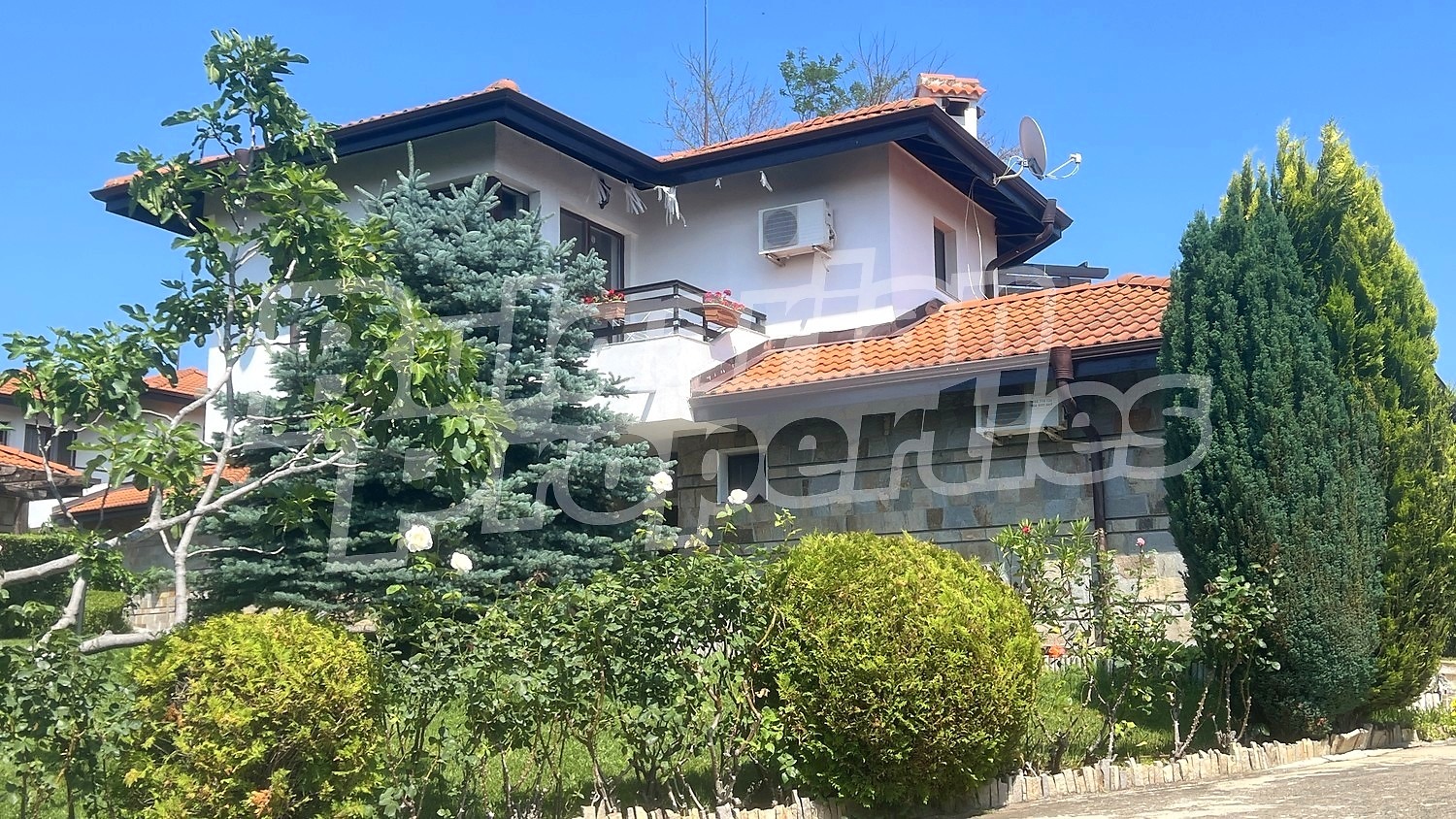 Имотът е част от самостоятелна къща, разпределена в два отделни апартамента с индивидуален вход на всеки етаж, както и идеални части от общия парцел 384 кв.м. собствено дворно място, богато озеленено и снабдено с автоматизирана поливна система.