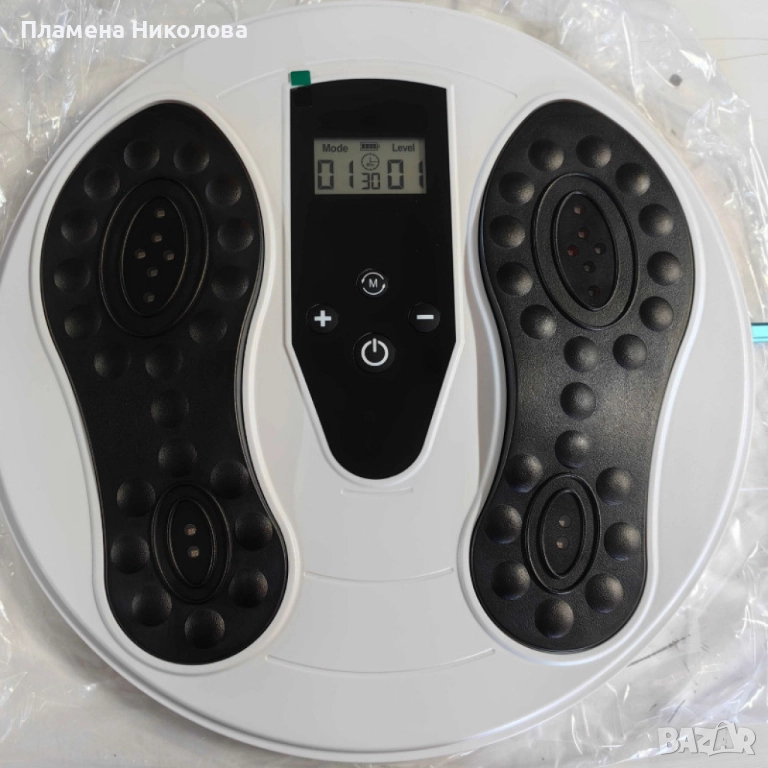 Съвет за безопасност: използвай с боси и сухи стъпала. Не прилагай едновременно с подложките за тяло. Ако имаш пейсмейкър, епилепсия, метални импланти, бременност или кожни рани в зоната на употреба – консултирай се със специалист преди употреба.