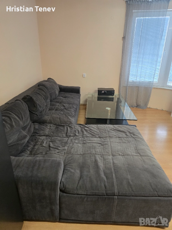 Дивана няма скъсано или протрито, тройката се разтяга и става на легло, но лежанката е напълно достатъчна за тази цел.