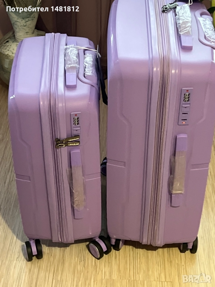 Комплект прекрасен лилалв цвят куфари 100%полипропилен(може и отделно) с цип за допълнително разширяване.