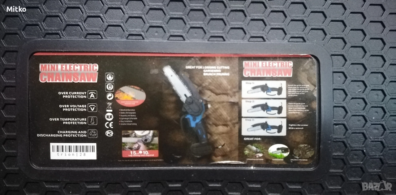 Резачката е чисто нова,купих я да нарежа 10 палета. Но за съжаление детето намокри зарядното и изпуши. Батерията е два ампера и е заредена напълно,заредена е и с масло и след като се сглоби е напълно готова за работа . Всички зарядни от марката крафт и makita стават за тази машинка. За Русе лично предаване за другите градове изпращам по Еконт с опция преглед и тест.