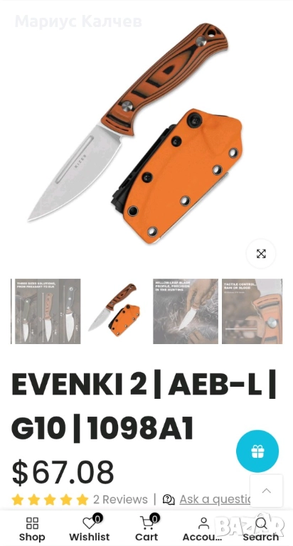 покритие Материал на канията: Kydex. Evenki 2 е солиден нож с фиксирано острие, който се откроява