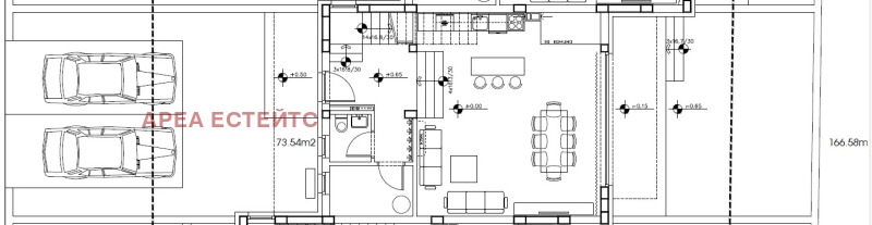 Къщата е на два етажа, РЗП 166.58 кв.м и е със следното функционално разпределение: