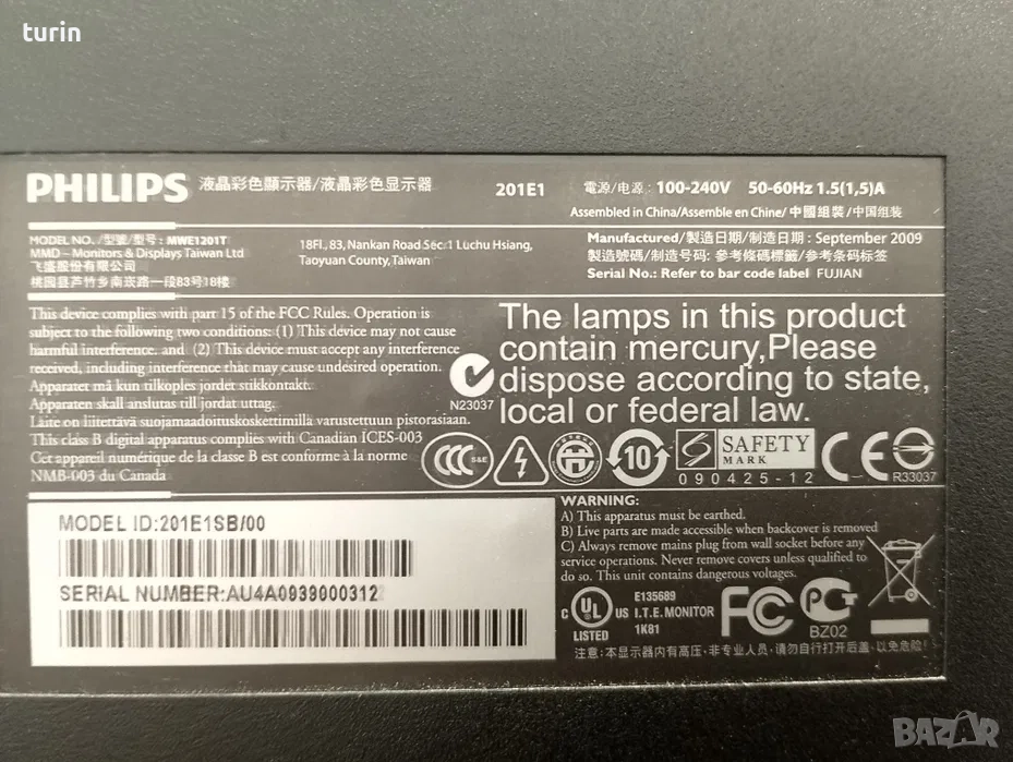 Монитор Phillips 201e1 → Обява 52990536