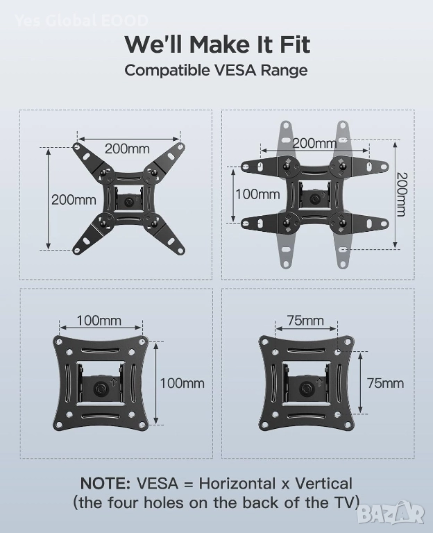 VESA съвместимост: стандартни VESA размери (според модела)