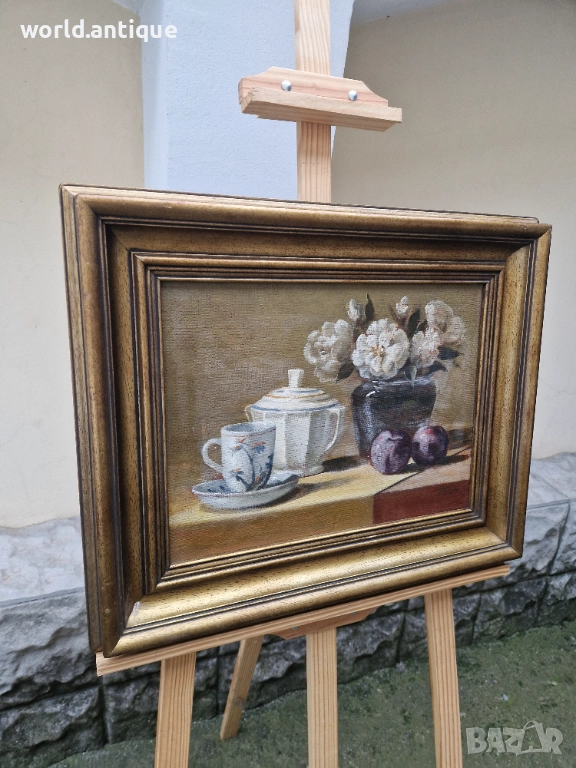 Продавам страхотен много добър антикварен авторски натюрморт масло върху платно в перфектно състояние без никакви забележки с чудесна рамка. Прекрасно допълнение към интериора на Вашия дом офис вила ресторант хотел. Подходящ и за подарък. Работя с всички куриери. Отговарям бързо.