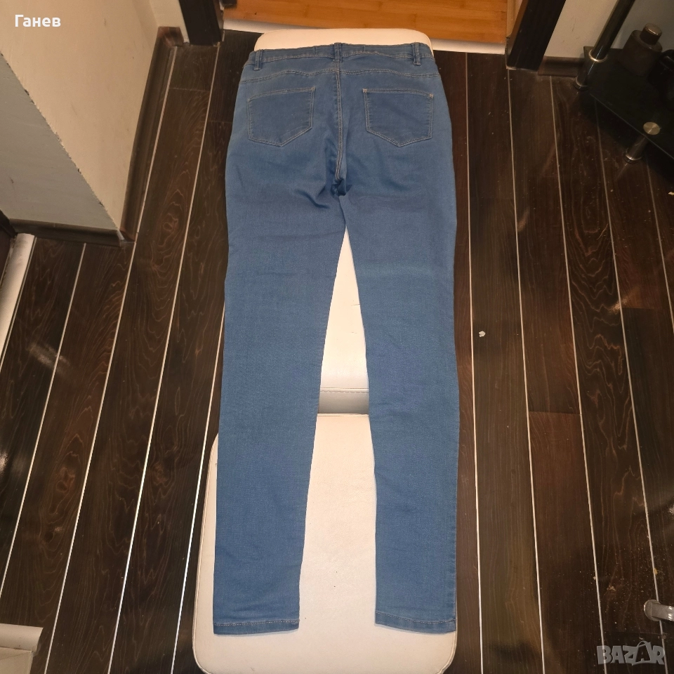 Продавам дънки за деца и подрастващи в син цвят. Използвани са веднъж в отлично състояние.Размер дължина от кръста до края на крачола 97 см.От чатала до долу 73 см.Талията 66 см.Отговарят на размер 36 .Ластична материя .Цвят светло сини.Изпращам по Еконт или Спиди