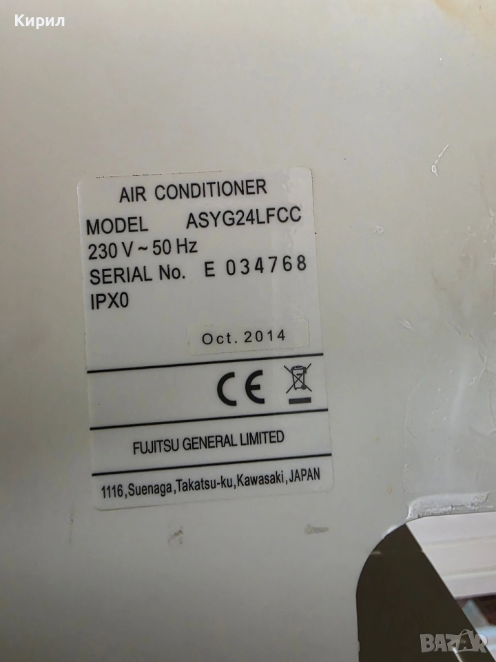 вътрешно тяло Fujitsu General 24 LFCC → Обява 52991269