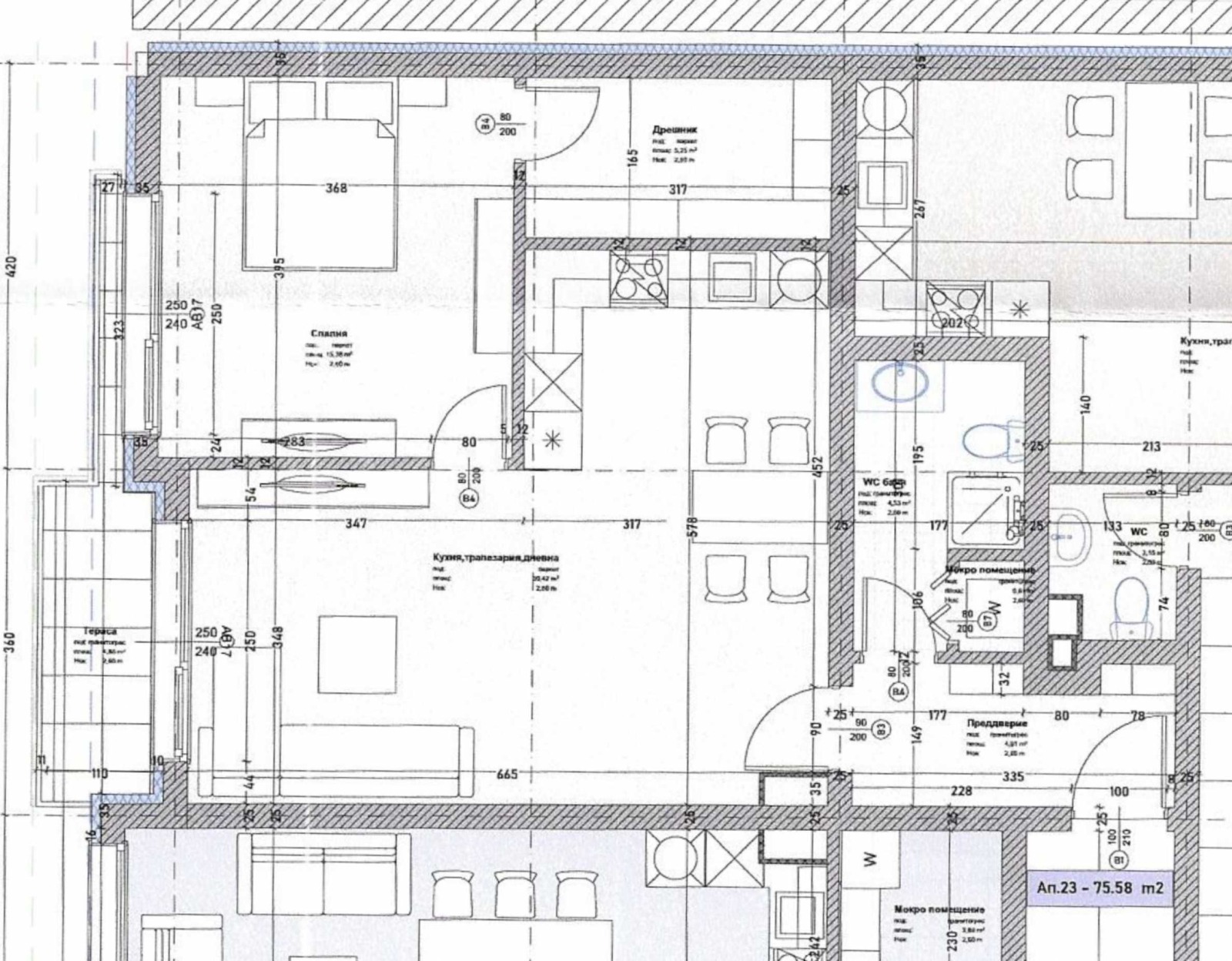 застроена площ: 75.58 кв.м;