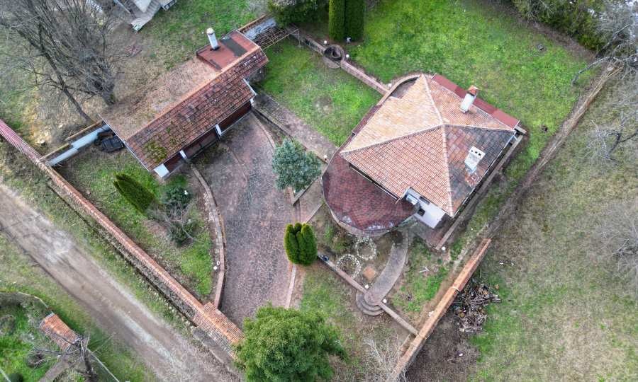 Имотът разполага с два гаража, покрита зона за барбекю със зидана пещ, външна чешма и красиво озеленен, терасиран двор с разнообразна растителност бор, кипариси, ела и лоза. Изградена е вътрешна алея с настилка от естествен камък, която осигурява удобен автомобилен достъп до гаражите и придава завършен архитектурен облик на пространството. Целият парцел е ограден с масивна зидана ограда, осигуряваща спокойствие, сигурност и уединение