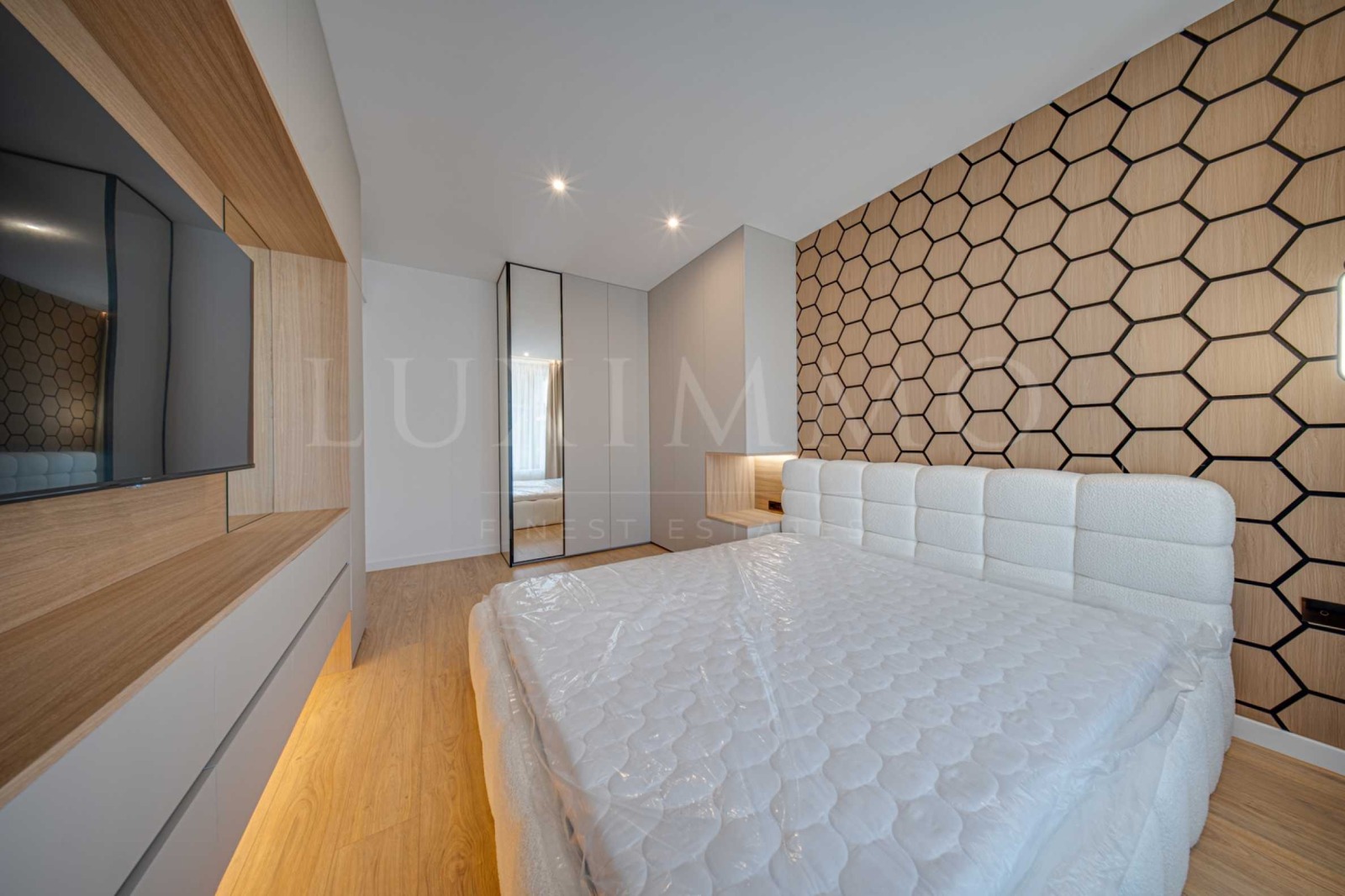 Апартаментът от 130 кв.м е разположен на 3-ти етаж. Имотът е светъл, предлага модерна визия и интериор с изчистени линии. Големите прозорци създават усещане за простор и допринасят за изобилие на светлина, а качествените материали и изискани мебели допринасят за уют и елегантност. Отоплението е подово чрез газово котле, като допълнително са инсталирани климатици за комфорт през летните месеци.