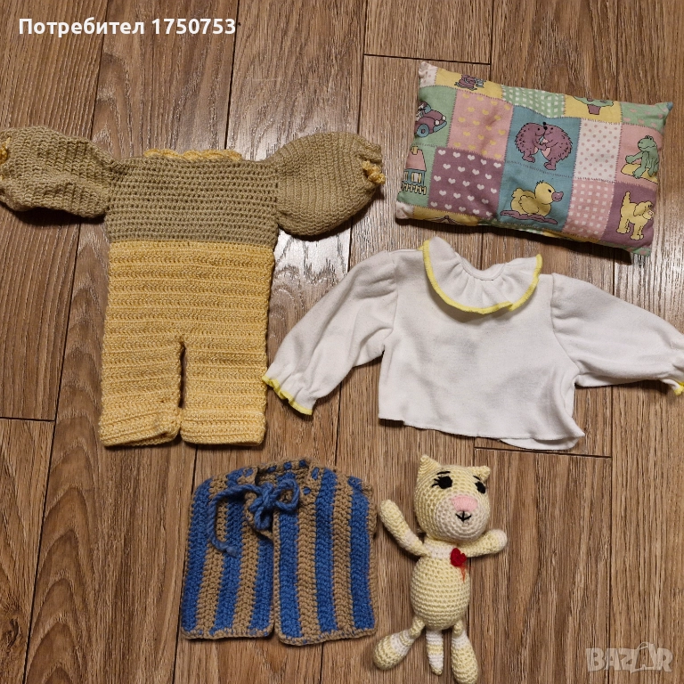 9 бр. различни , очарователни кукли бебета. Отлично състояние и качество. Куклите се продават отделно на цена 5,13 евро(10 лв) на брой за големите и 2.56 евро(5 лв) за малките. Допълнителна информация: двете розови големи кукли са с тяло с мек пълнеж; двете големи кукли- със син гащеризон и с червен елек са с тяло с мек пълнеж , без ръцете и главата. Към куклите има аксесоари - ваничка , гърне , риза и плетено елече , плетен гащеризон, възглавничка, плетено животинче.Цената на всички аксесоари е 12.80 евро (25 лв).
