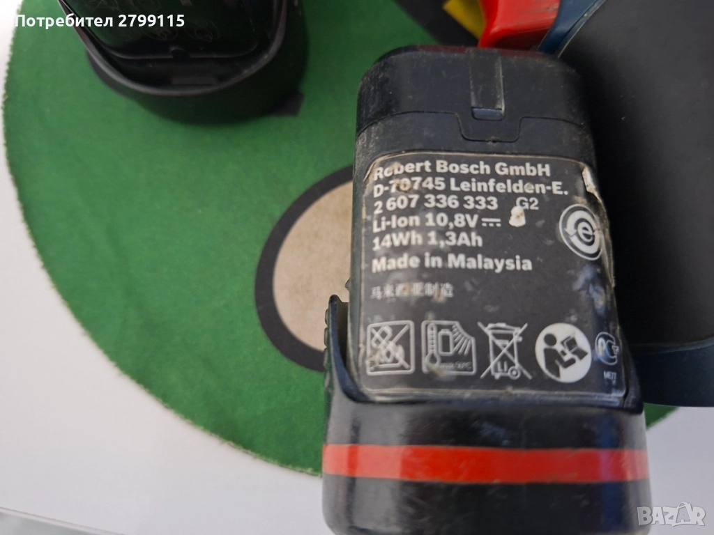 2 оригинални батерии Bosch: 14 Wh / 1.3 Ah и 16.2 Wh / 1.5 Ah.
