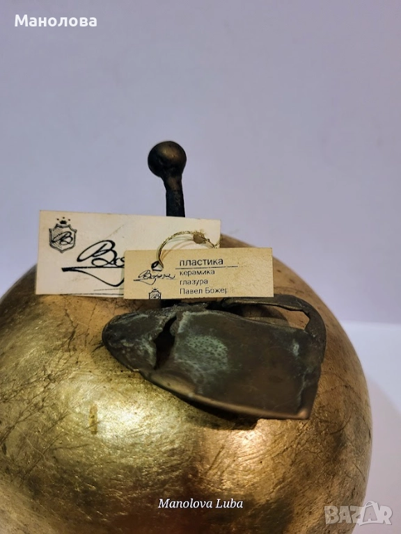 Ябълката е изработена от керамика, а дръжката и листото и са от