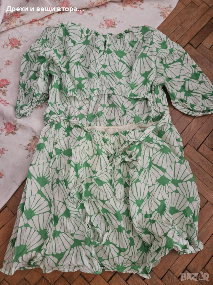 Рокля H & M памучна, шарена със зелено и с отворен гръб → Обява 52992069