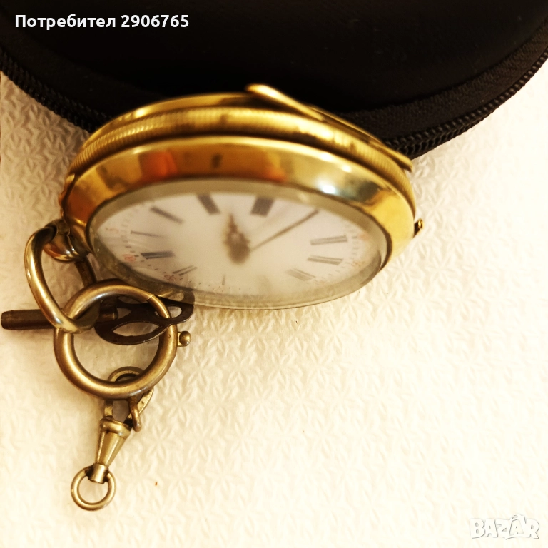 Продавам работещ, позлатен, Швейцарски джобен часовник с ключ.