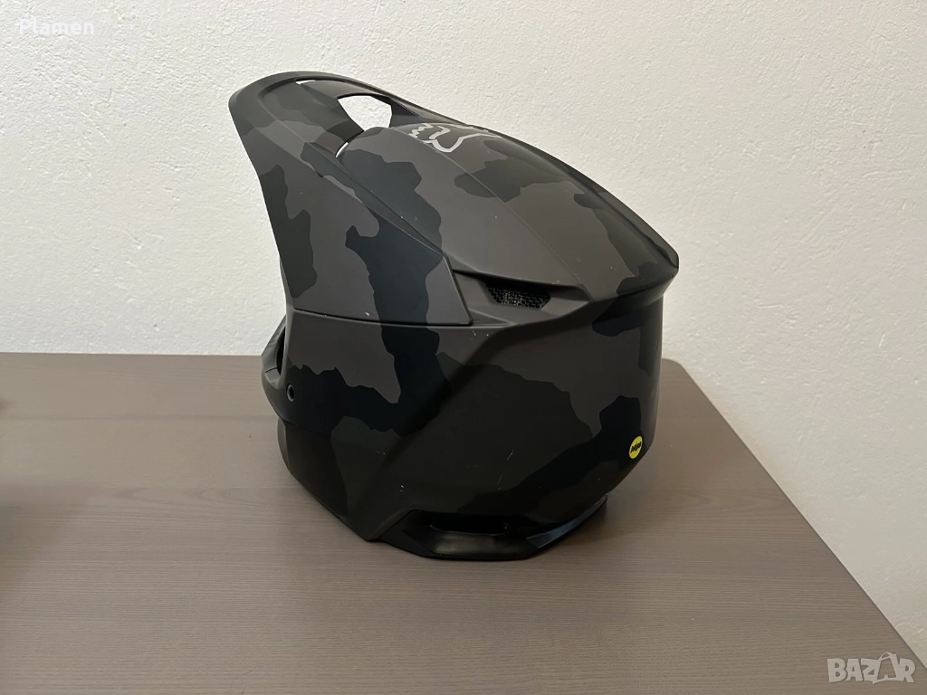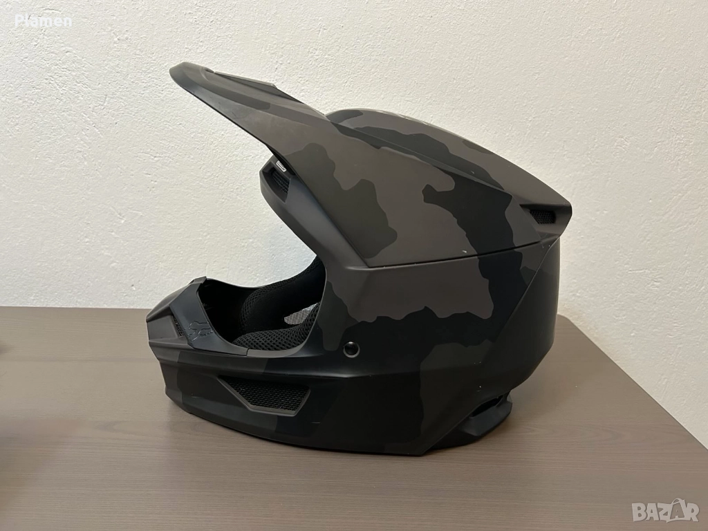 Продавам мотокрос каска FOX V1, оригинална, с камуфлажен дизайн.