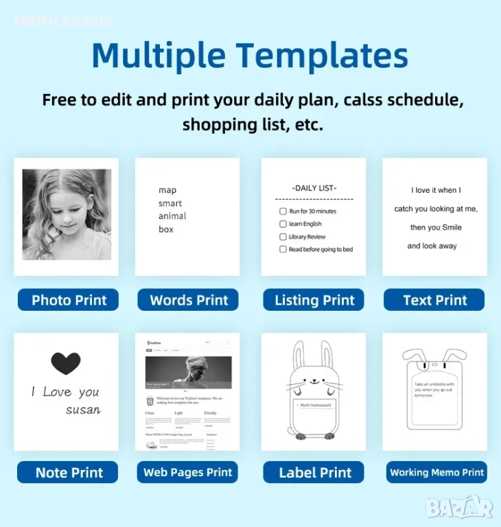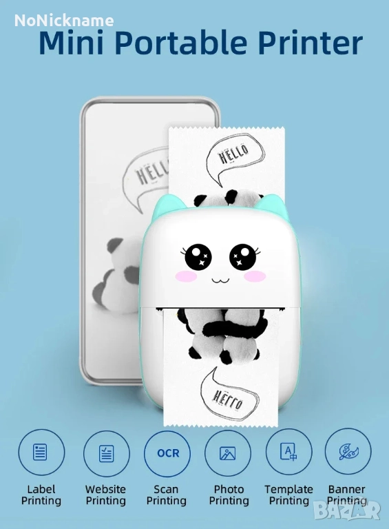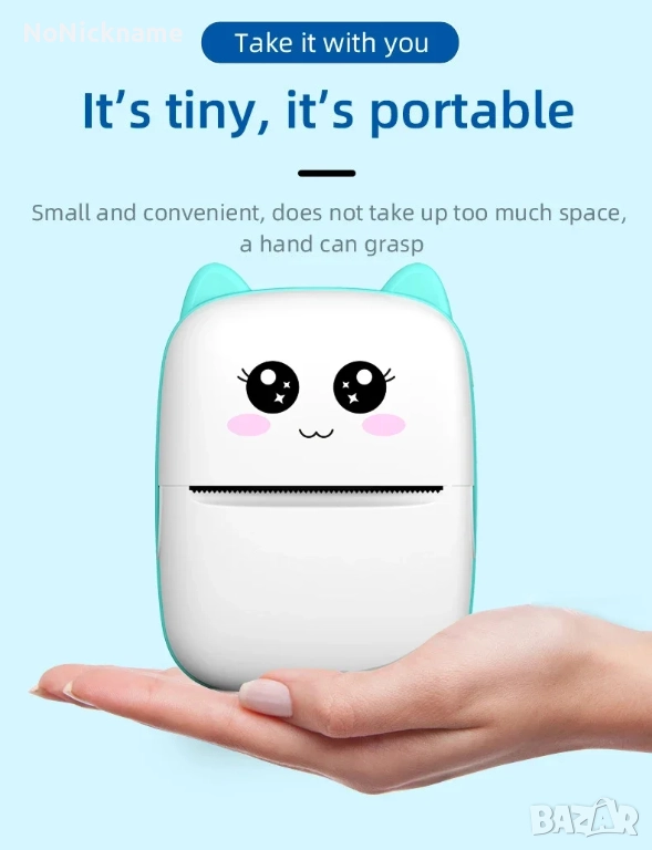 Преносим мини термопринтер с 6 ролки комплект, безжичен Bluetooth термо термичен принтер