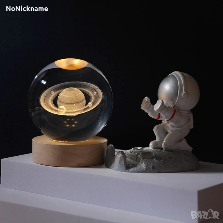Сатурн 3D лампа с кристална плазмена топка с галактически и планетарни проекции, уютна атмосфера