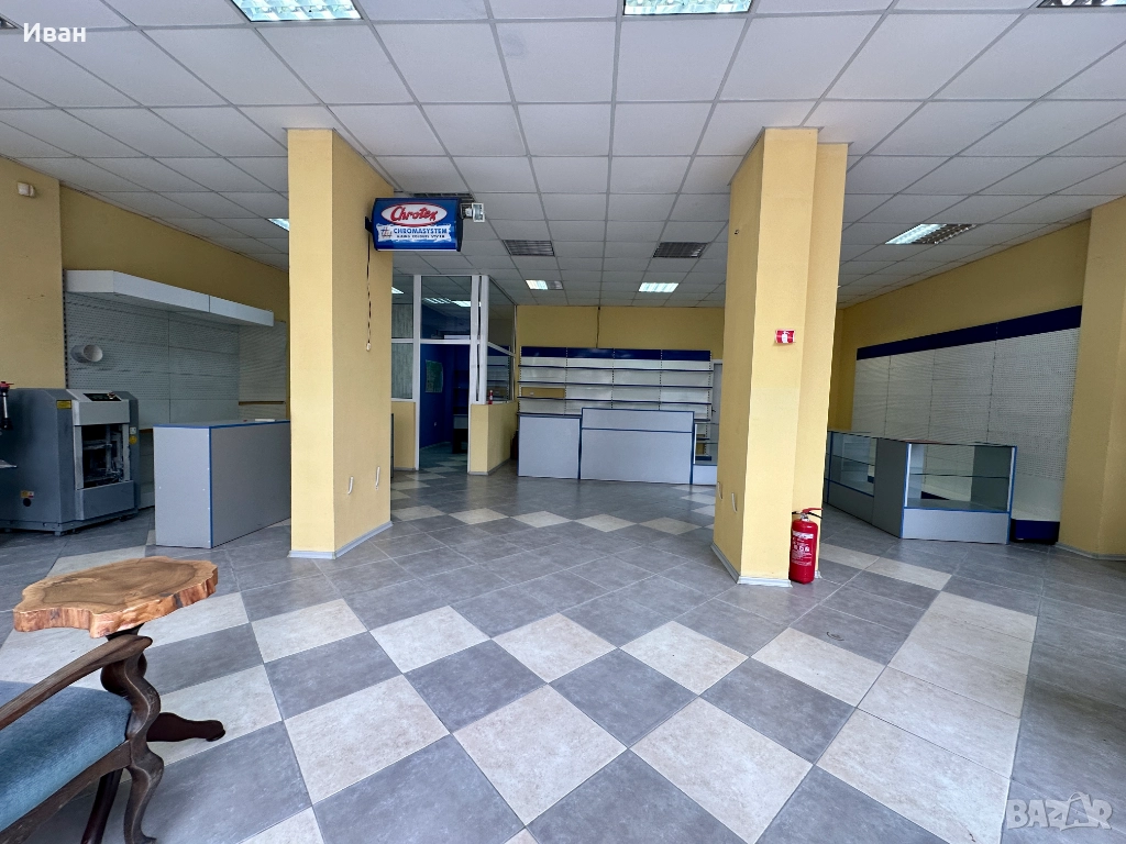 Магазин на оживено, пешеходно място, с множество различни магазини наоколо и голям безплатен паркинг за клиенти, и доставки. Има обособен офис, склад, тоалетна. Климатици, СОТ опроводяване, опт. интернет. Място за реклама на фасадата.