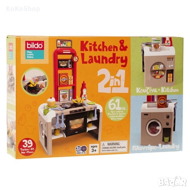 Игрален комплект,подходящ за всеки млад готвач. Пица,сладки,супа или сандвич...тук има всичко необходимо,за да приготвите ястие и за най-капризния член на семейството. Фурна,котлони,всички необходими аксесоари,дори пералня-всичко е включено в тази атрактивна кухня.