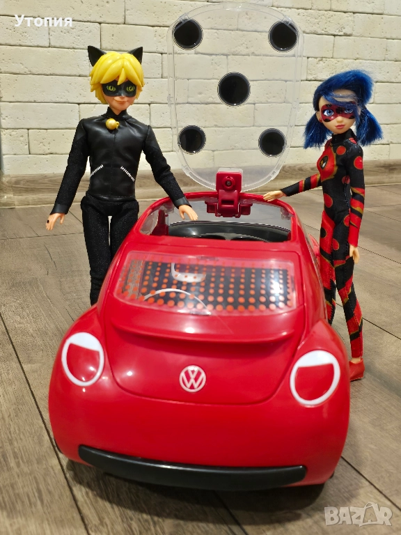 Комплект Калинка, Черния котарак и колата на Калинка Колата е с отварящи се врати и багажник, две седалки. В отлично състояние. Куклите също са оригинални, в отлично състояние. Цена на комплекта: 90 лв/46€